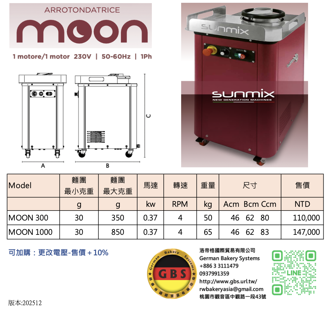 洛帝格台灣總代理Sunmix 麵團滾圓機 MOON